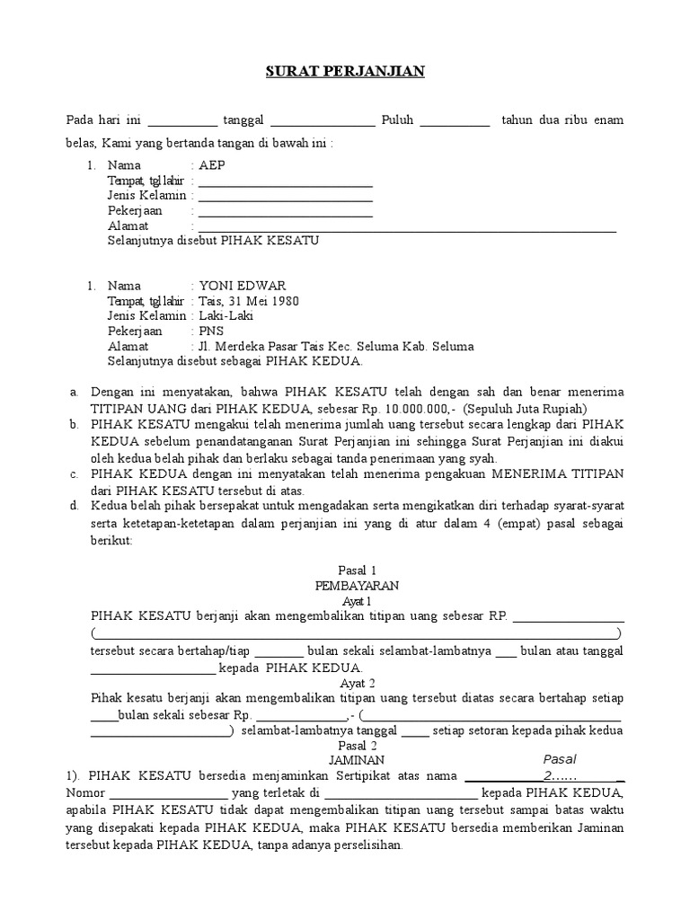 | Lihat Surat Perjanjian Penitipan Uang Pdf |